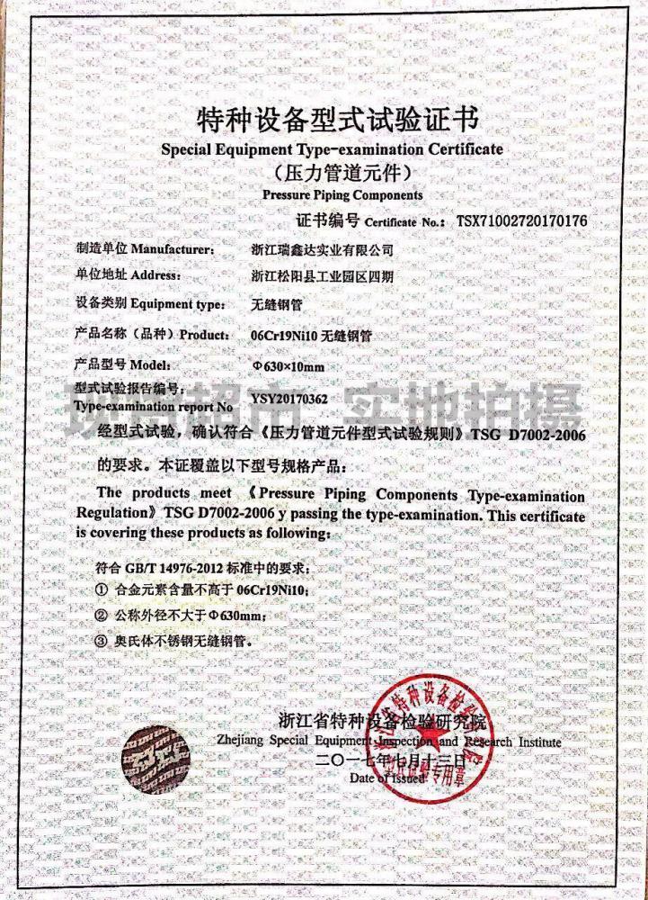 浙江江瑞鑫達實業(yè)有限公司,創(chuàng)始于1992年,是國內(nèi)大型不銹鋼無縫管生產(chǎn)企業(yè),公司固定資產(chǎn)超億,瑞鑫達專業(yè)生產(chǎn)高溫(鎳基)合金、奧氏體、雙相鋼、尿素級不銹鋼、超級不銹鋼等系列的鋼管。公司配備年產(chǎn)15000噸不銹鋼無縫管生產(chǎn)線,公司擁有德國進口直讀光譜儀、超聲波探傷儀、渦流探傷儀、水壓 試驗機、X射線透視儀、氮氧分析儀、萬能試驗機、沖擊試驗機、自動碳硫分析儀、內(nèi)窺鏡等全套檢驗檢測設備。先進的檢驗檢測設備以及嚴格的科學化管理, 確保每一批出廠產(chǎn)品能滿足客戶的需求,質(zhì)量管理體系ISO9001認證、環(huán)境管理體系IS